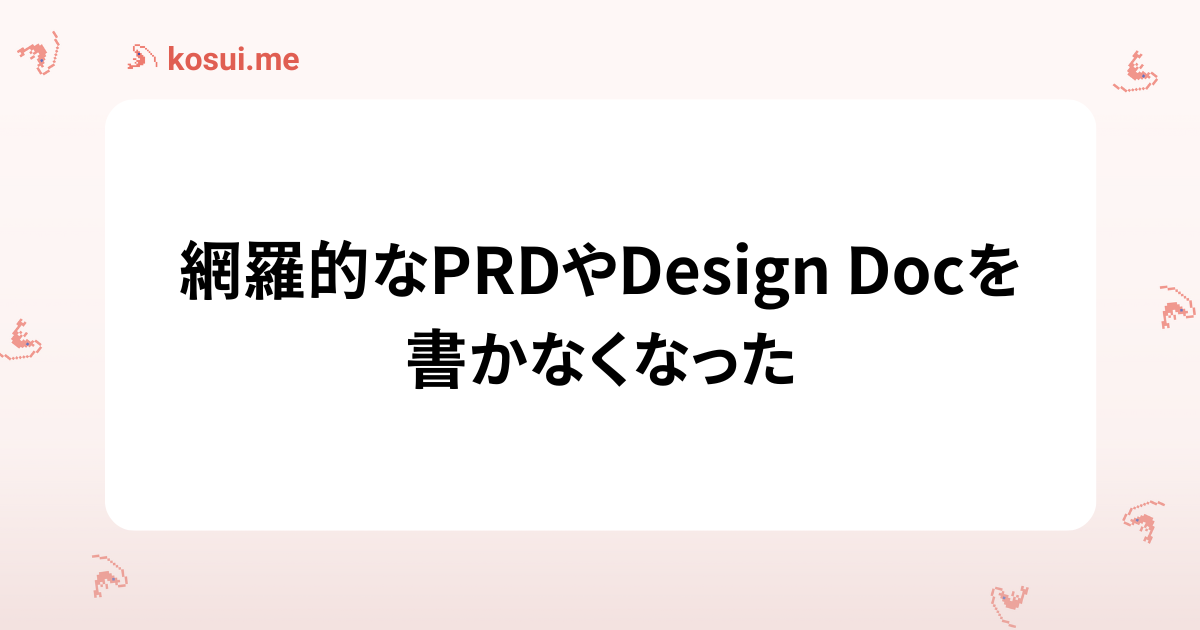 網羅的なPRDやDesign Docを書かなくなった
